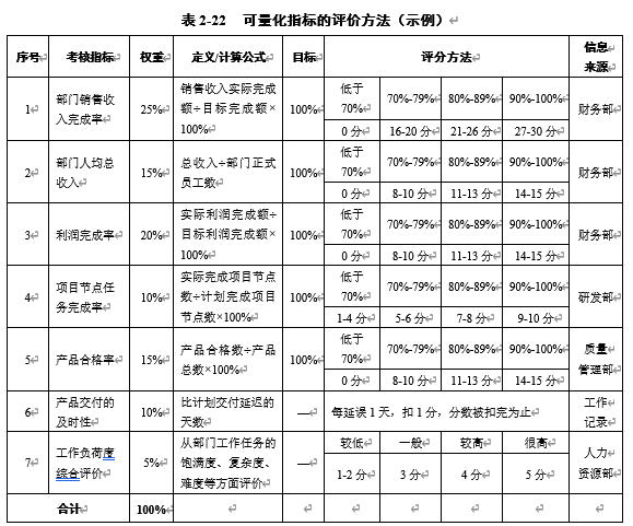 表2-22 可量化指标的评价方法(示例)