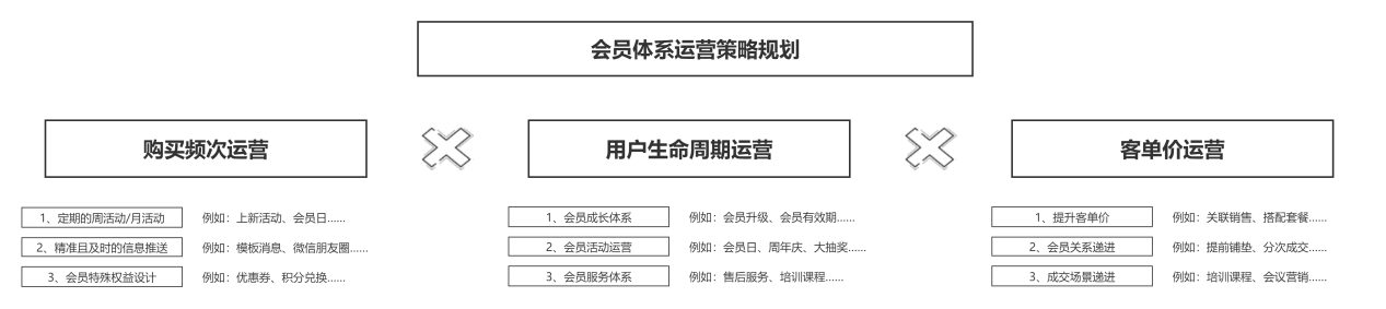 如果说会员体系的设计,是基于用户关系递进,在整个路径上面去提前做好规划。那么会员体系运营策略规划,则可以看成是针对具体某个会员,他在这个路径上的不同位置时,你采取什么样的策略,才能尽可能提高其转化率。