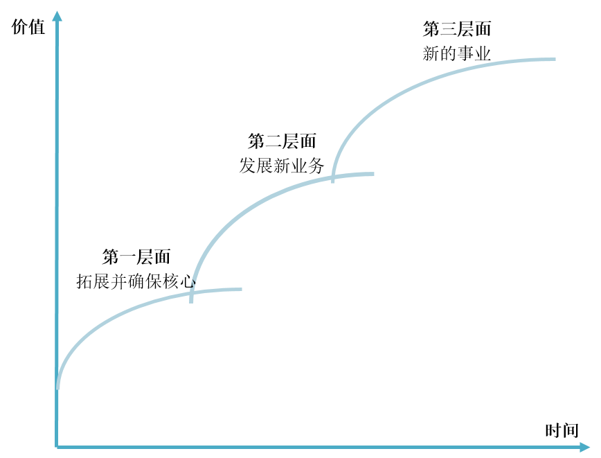 提出了增长阶梯的概念的“麦肯锡三层面法”也是一个广为人知的公司战略工具,如图5所示。