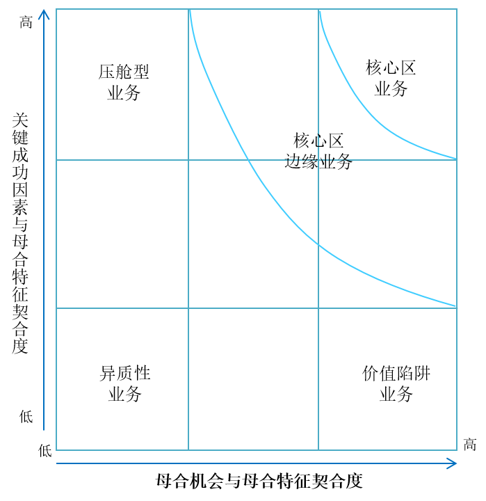 20世纪90年代,公司层面战略的思维视角发生了很大的变化。以往不管是波士顿矩阵还是GE矩阵,都没有立足于母公司的视角来考虑业务彼此之间的联系,以及各业务与母公司核心能力的兼容性,因而导致母公司忽视了不相关多元化的弊端,盲目扩大业务规模,或是抢占并不熟悉的业务领域等问题。