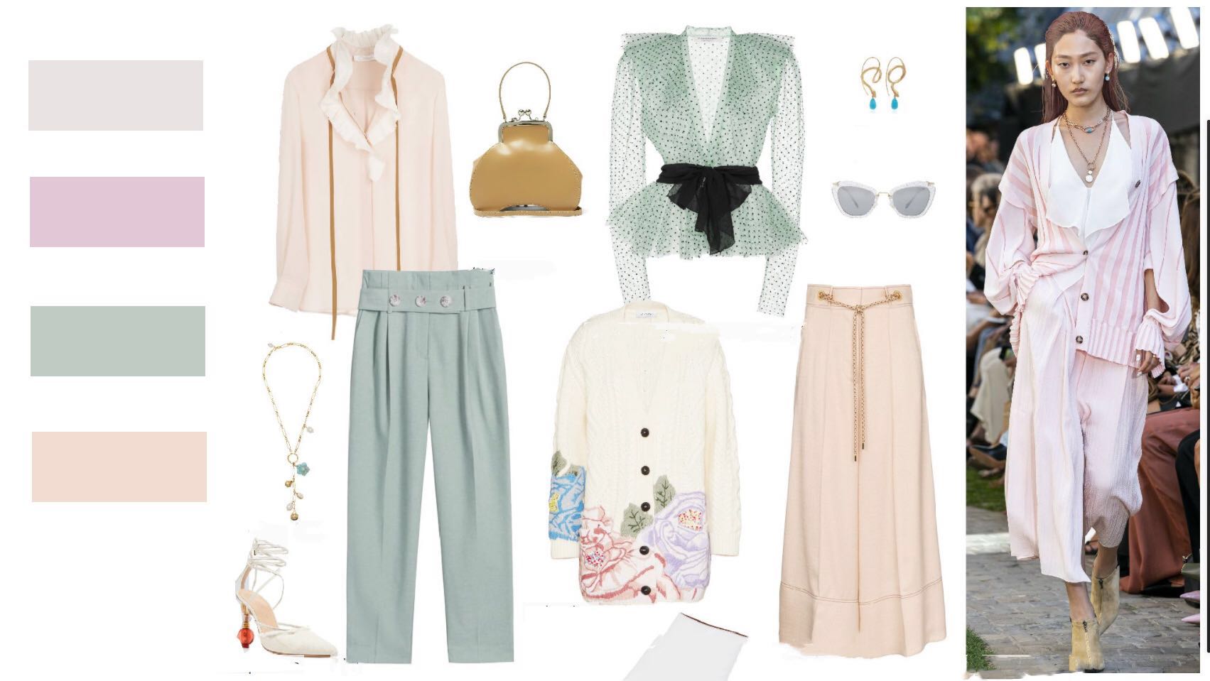 甜美温柔的货品基调:说到甜美,我们一定能想到粉色,粉色是典型的的女性色彩,跟带有狂热感情的红色不同,粉色是弱化了的红色、美化了的白色,带有柔软与顺从的感觉。买手可尝试将粉色与白色组合在一起,粉色会显得更加清新娇嫩。如图8-25所示。