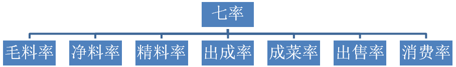 毛料率、净料率、精料率、出成率、成菜率、出售率和消费率,这七个率一直伴随着,从田间到餐桌的餐饮生产制作的全过程,是计算和检验原辅调成本有效性的7个步骤和方法。