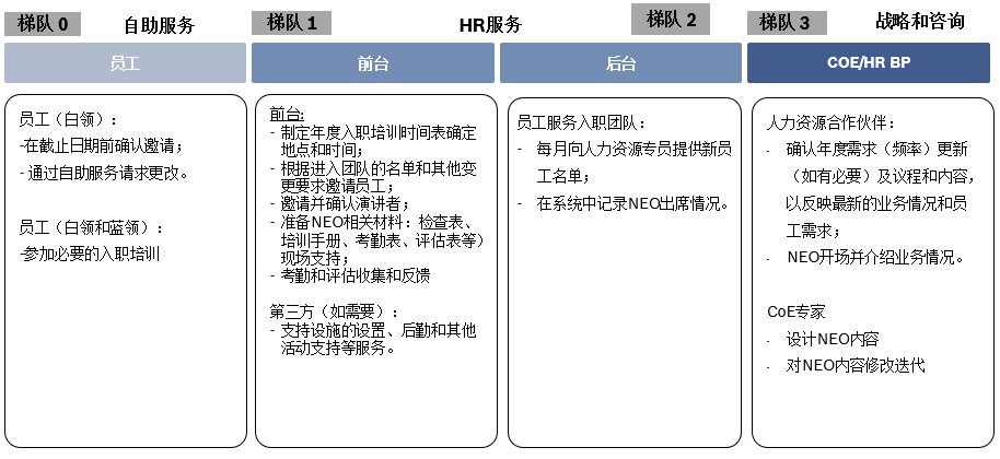 图9-3 新员工入职培训(NEO)的第三层流程的角色和职责