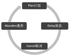 我们都希望项目能够成功,但由于各种原因并不是每个项目都能成功的,失败项目的PDCA,计划(Plan)、延误(Delay)、取消(Cancel)、遗弃(Abandon) 也是项目经理珍贵的经验教训(如图0-3所示)。失败乃成功之母,做好复盘,学会爬坑,学会躲坑,事后分析追责不为甩锅,为更好地分析问题,避免类似事件,也为将来能够从失败中走向成功。