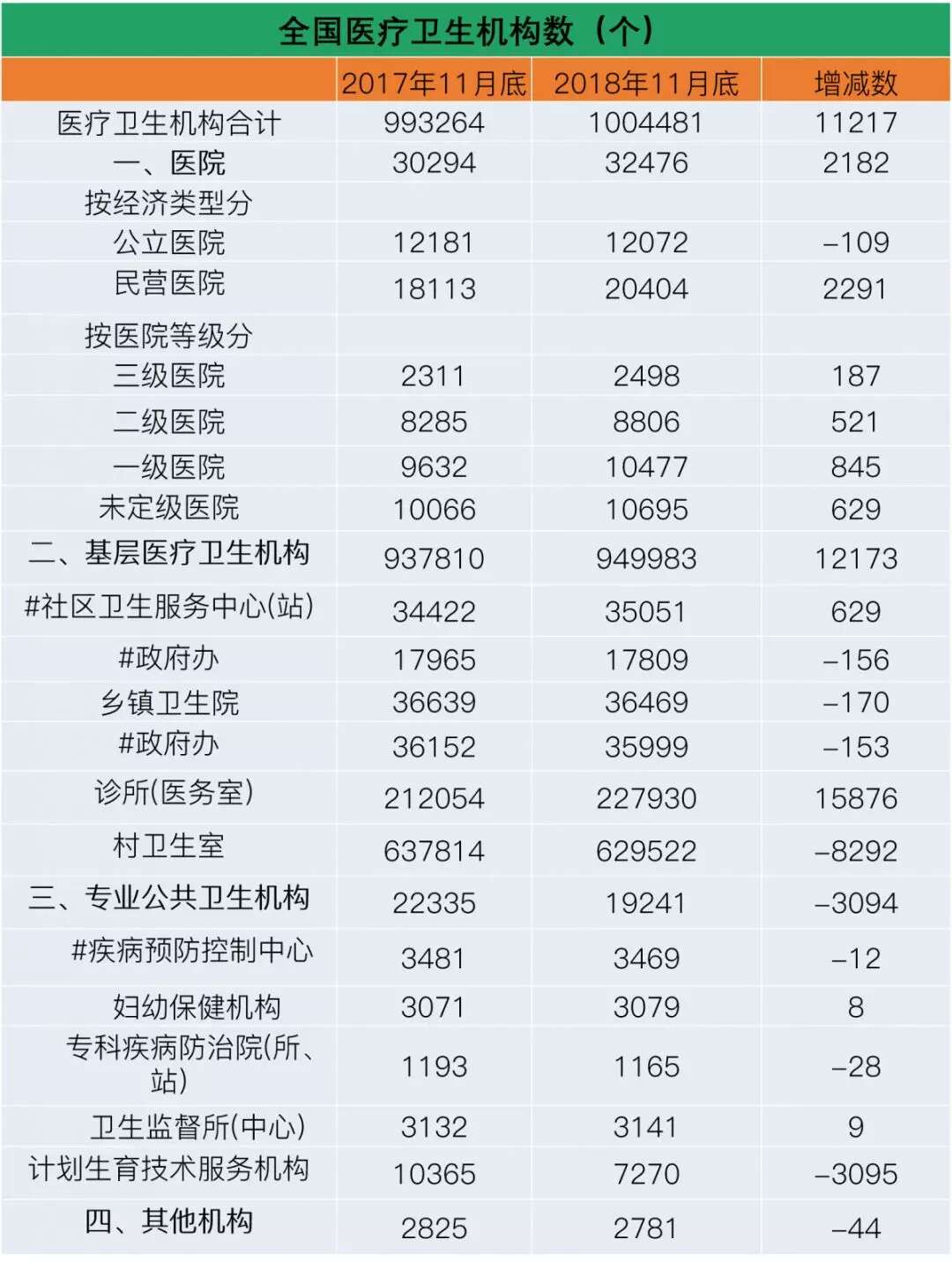 随着中国城镇化进程的发展,农村人口锐减。前面的统计数据也显示,与去年同期相比,2018年诊所增加15876家,村卫生室减少8292家。