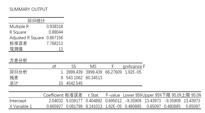 接着进行线性回归分析,得到R平方值为0.881613,比之前略有提高。